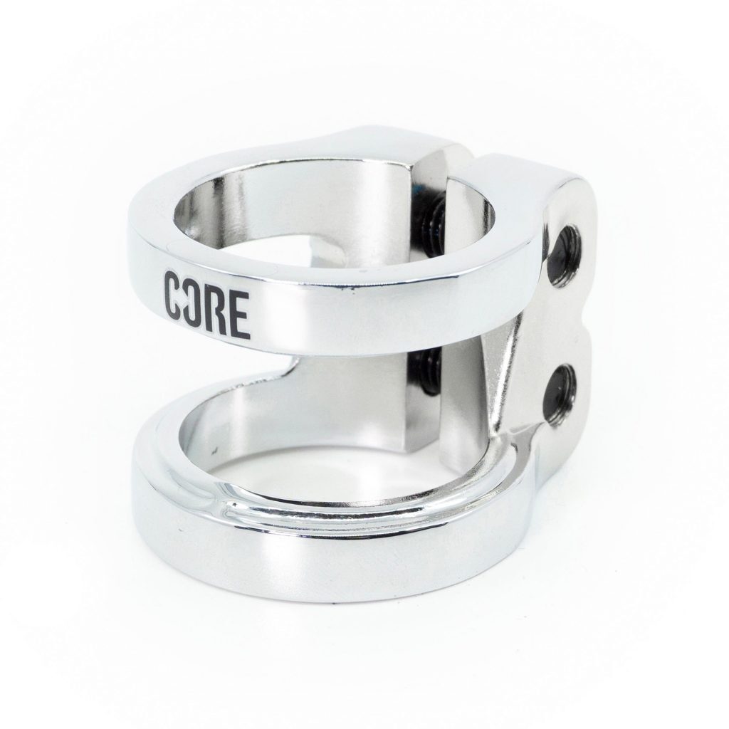 CORE Venom Double Clamp – Chrome The All New Venom Clamp has landed! Designed similar to our previous SL clamp the Venom is far more engineered. Cold forged and made from 6061 aluminium with CNC’d cutouts means this double clamp is insanely lightweight. Our Slim design paired with 6mm high tensile bolts means this clamp packs a punch. The perfect mix of strong and light. Durability is our main focus with this product but at CORE we always make sure our parts are lightweight. The venom clamp is oversized as standard but also comes with a size reducing shim. This way you can run every bar on the market with this clamp. Any size variation and any material will work with the Venom Clamp. CORE Venom Double Clamp Features 6mm bolts Double Bolt Design CNC weight-reducing cutouts CORE logo Made from Aluminium 6061 Cold Forged and CNC’D Includes size-reduction shim to fit both standard and oversized bars Weight: 91g Height: 38mm Colours: Black, Chrome