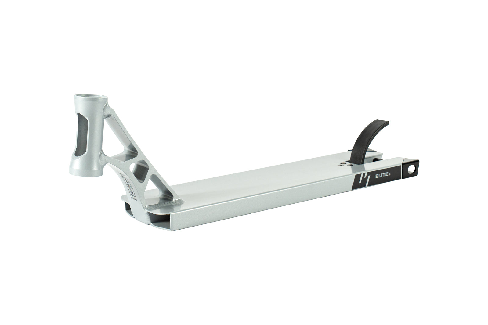 Grit Elite 5 Deck - Silver Mist Grit Pro Scooters offers a range of the best quality pro scooters. wheels, bars and parts for kids through to teens and adults. Riden and tested by Taj Shambrook, WSG Junior World Champion. The Grit Elite 5 is an all new size for the classic Grit Elite line. Developed with Pro Riders, the 5 wide deck is the perfect width and length for riders to advance their skills on. Rear Deck blocks can be removed to an angled rear on the deck, so the deck can be tailored to Park or street style riding. Features: NEW Skeletonized Down Tube W:127mm (5”) L 520.7 mm (19.5”) Integrated Head Tube, W/ Alloy Deck Insert block Weight 1.45kg