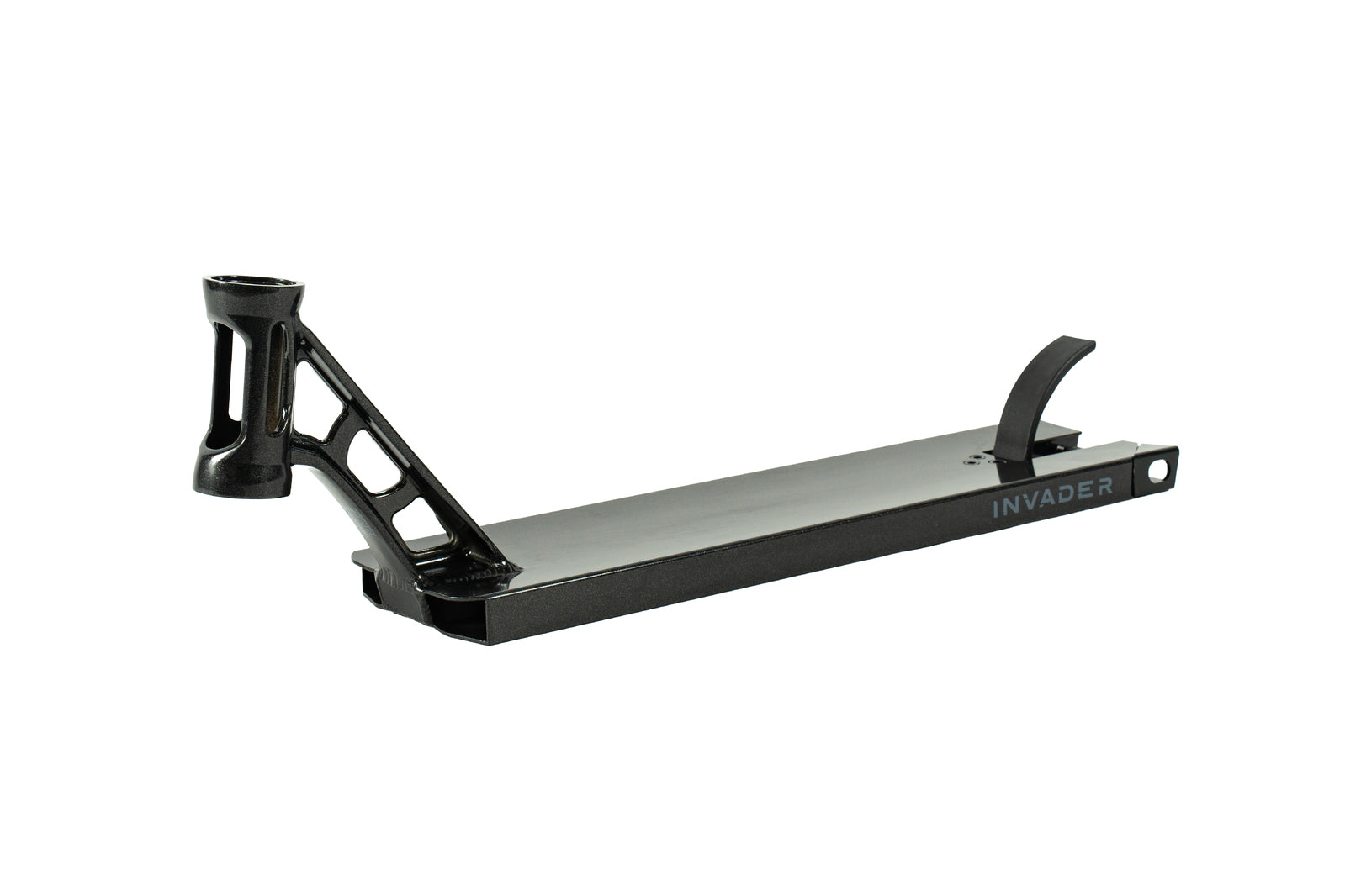 Grit Invader deck - Black Metallic Grit Pro Scooters offers a range of the best quality complete scooters and parts for kids through to teens and adults, Riden and tested by Taj Shambrook, WSG Junior World Champion.. Our Scooters are designed and tested in Australia and built to the highest standard. The Grit Invader deck is for the hard core shedders and riders who want to land serious tricks and be the envy of all their mates. Key Features: NEW Skeletonized Down Tube W:127mm (5”) / L 520.7mm (20.5”), Integrated Head Tube, W/ Alloy Deck Insert block Weight 1.48kg