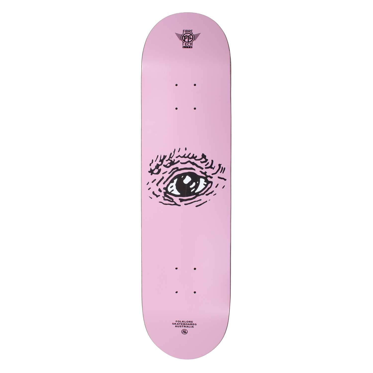 Folklore Fibre Tech Lite deck 8.00 with Eye graphic in Pink.
