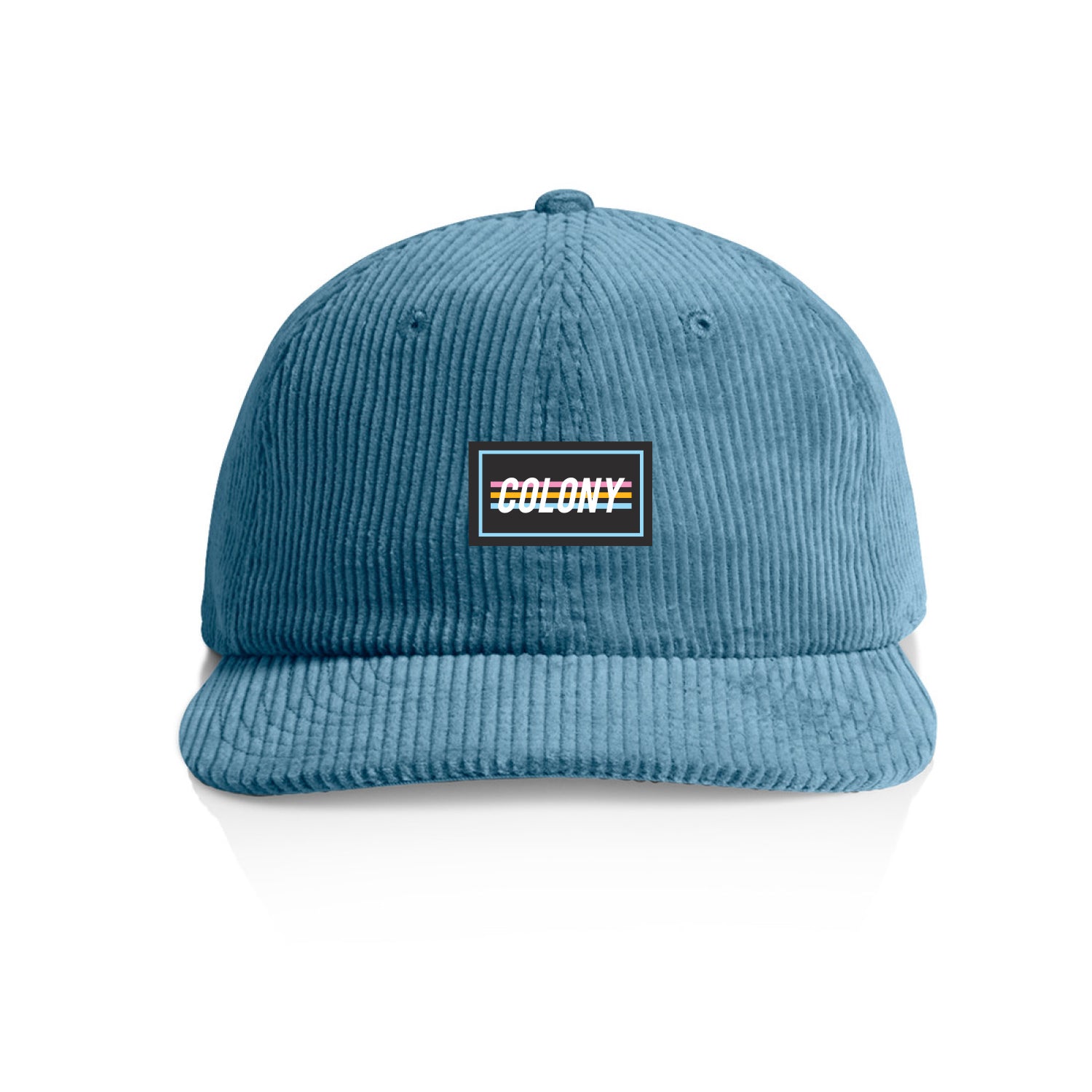 Colony 3 Stripe logo patch on a a mid-weight, unstructured six-panel cap crafted from 100% cotton with 8-Wale Partridge Cord.