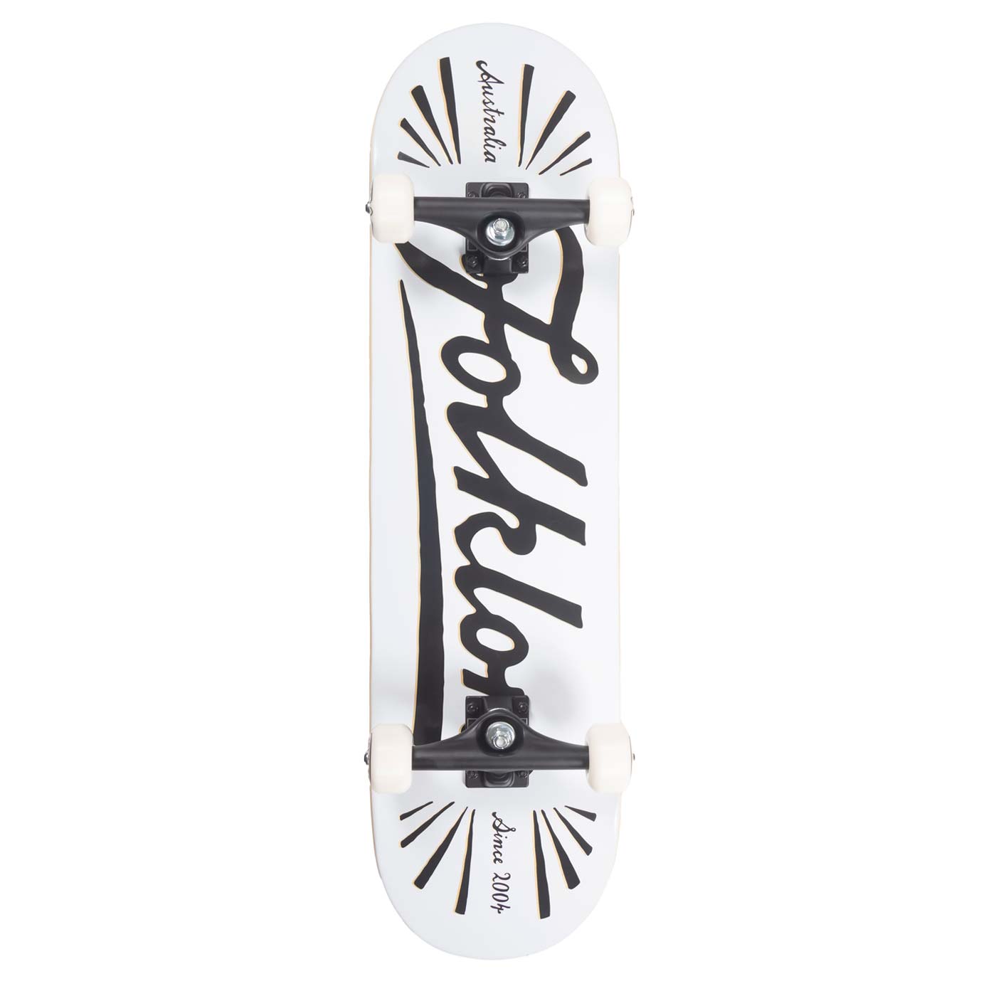 Folklore Warm Press Complete 8.375 with Flare graphic in White.